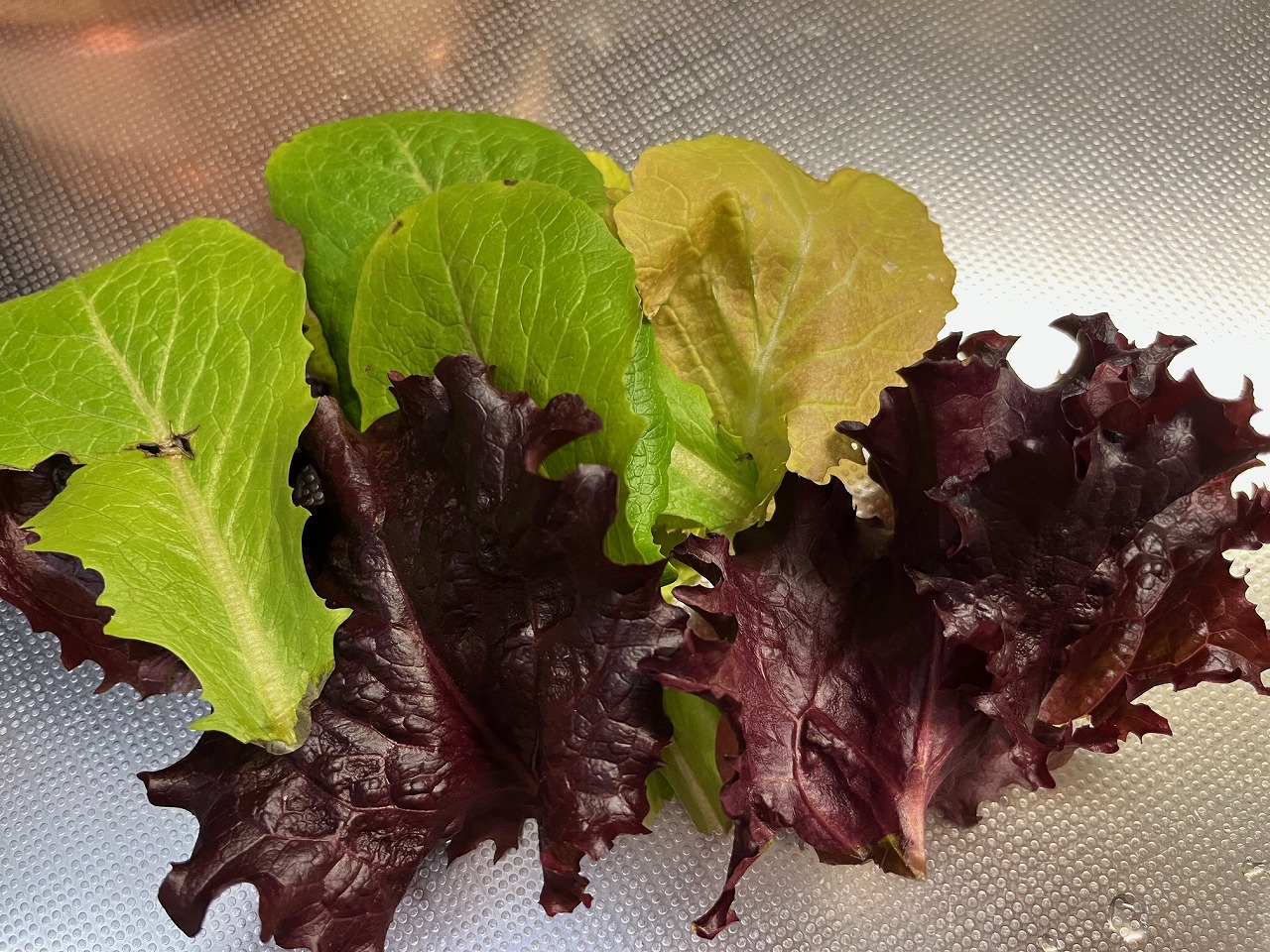 収穫したレタスや水菜、小松菜はサラダに、