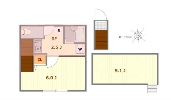 | 種別 / 構造 | アパート / 木造 | 主要採光面 | 西 | 所在階 / 階数 | 2階 / 2階 |
