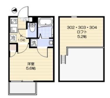 | 築年月 | 2018年11月 | 間取り | 1K( 洋室5.6畳/K1.5畳 ) | 専有面積 | 17.01m2 |